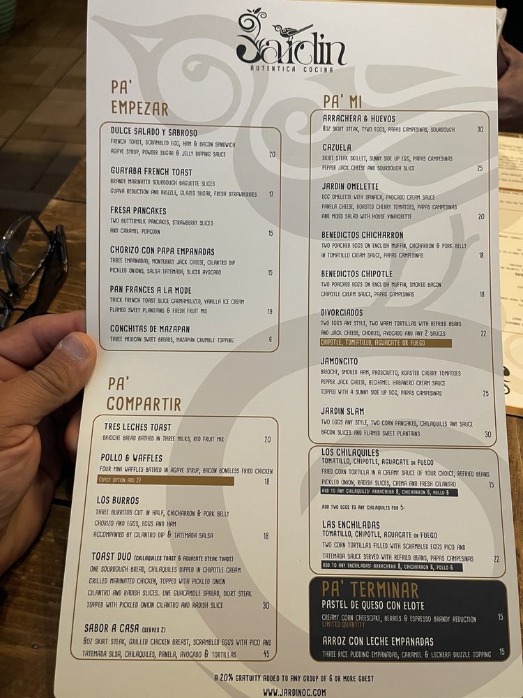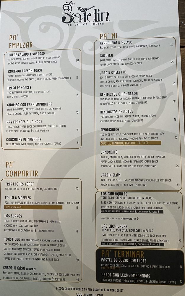Jardin Autentica Cocina offers a vibrant dining experience in Orange, CA, with a menu focused on authentic Mexican cuisine. Known for its fantastic breakfast options, such as the steak and eggs, customers rave about the quality and taste of the dishes. The ambiance is described as cozy and inviting, with hand-painted murals transporting diners to a Mexican town. The restaurant's decor and lighting create a romantic atmosphere, perfect for a special night out. While some reviewers mention minor issues like parking cost and wait times, overall, the attentive staff and delicious food make Jardin Autentica Cocina a must-visit destination. Don't miss out on trying their Margarita Flight for a taste of the signature flavors they offer.